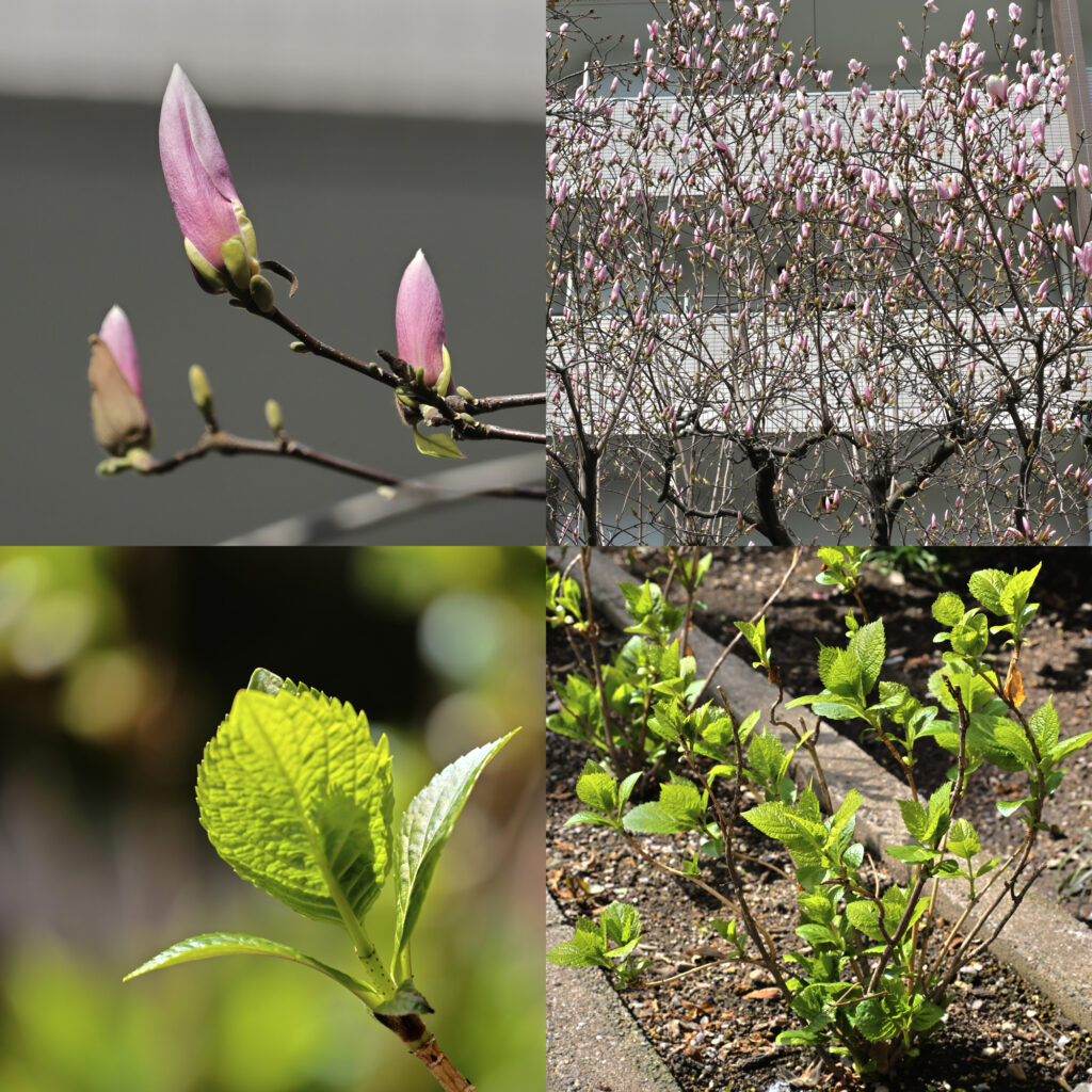 木蓮の花は一足先に3分咲きといったところでしょうか。